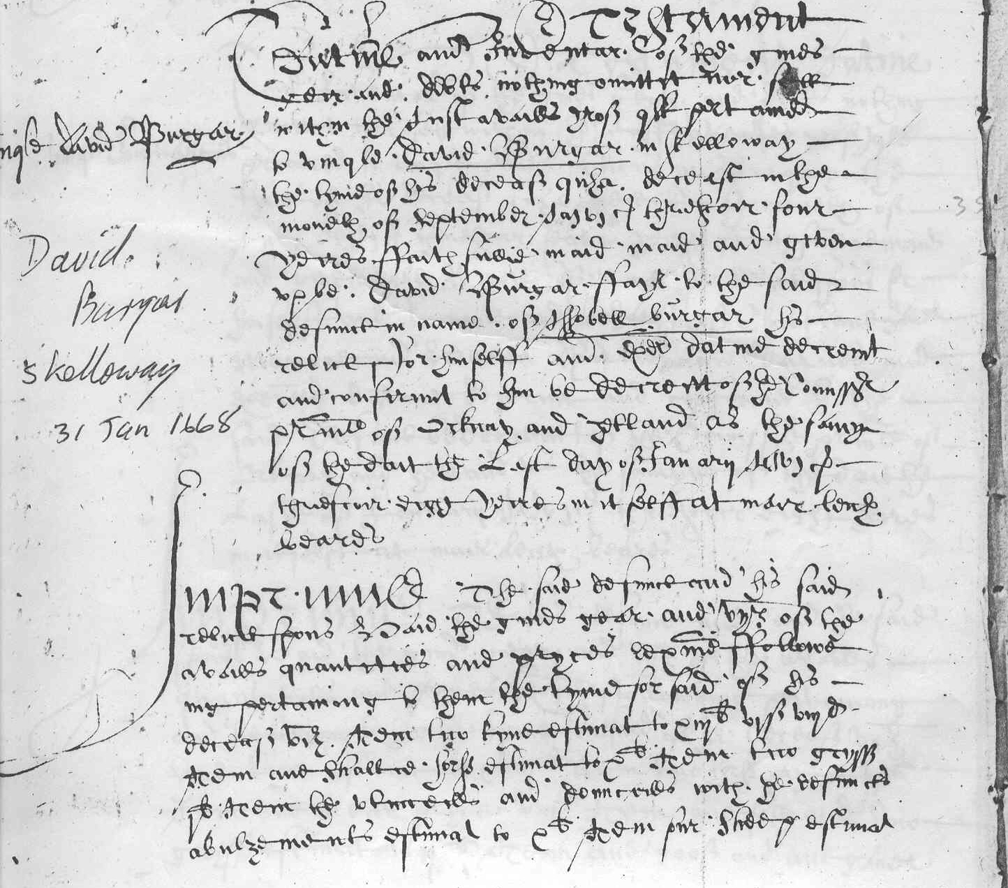 The Testament and Inventory of David Burgar died 1668