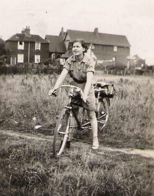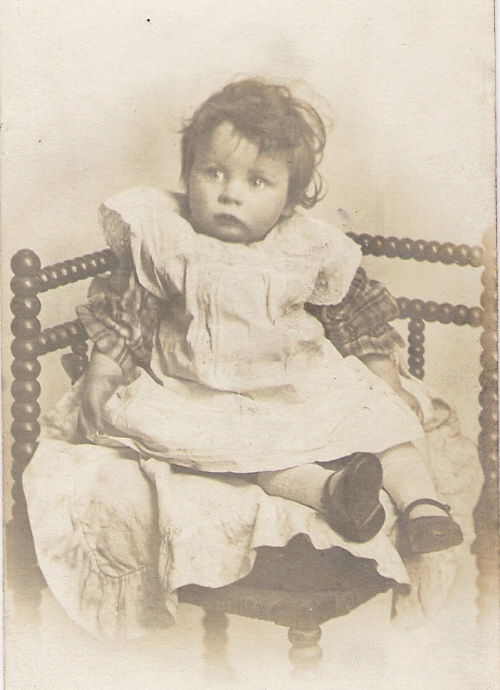 In the arms of her mother, Annie (Adams) Bond, with eldest sister Annie and brother Joe (about 1911)