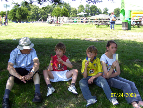 Bill with Jamie, Jack and Jade - ice-cream time at Knebworth House 2008