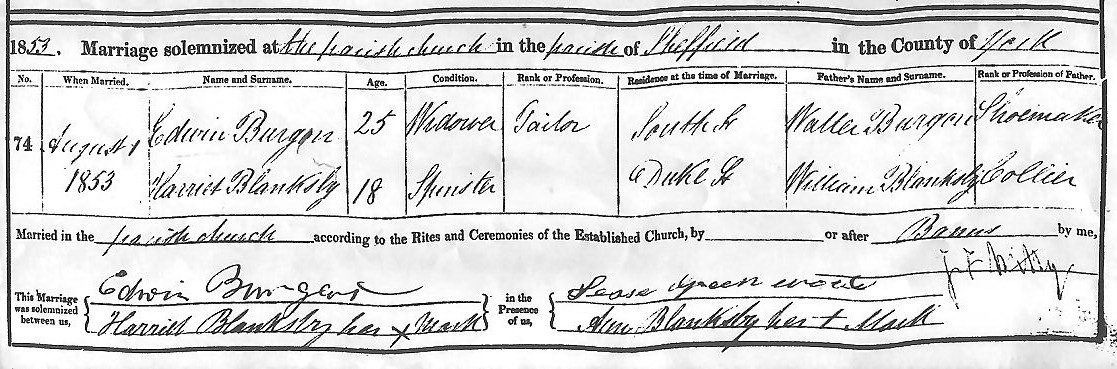 The Marriage of Edwin Burgar and Harriet Blanksby on 1st August 1853.