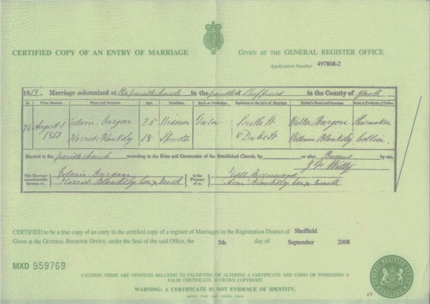 The item below was taken from the Marriage Register of the Parish Church of Sheffield.