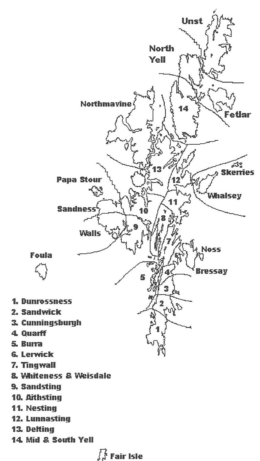 In the 1700s the parish of Dunrossness included Sandwick (No 2) and CunningsBurgh (No 3). Later these two became separate parishes.