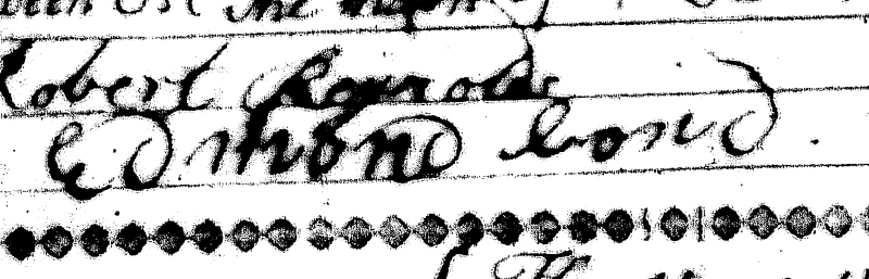 Signatures of Edmond Bond (about 1700-1769) and his son-in-laws.