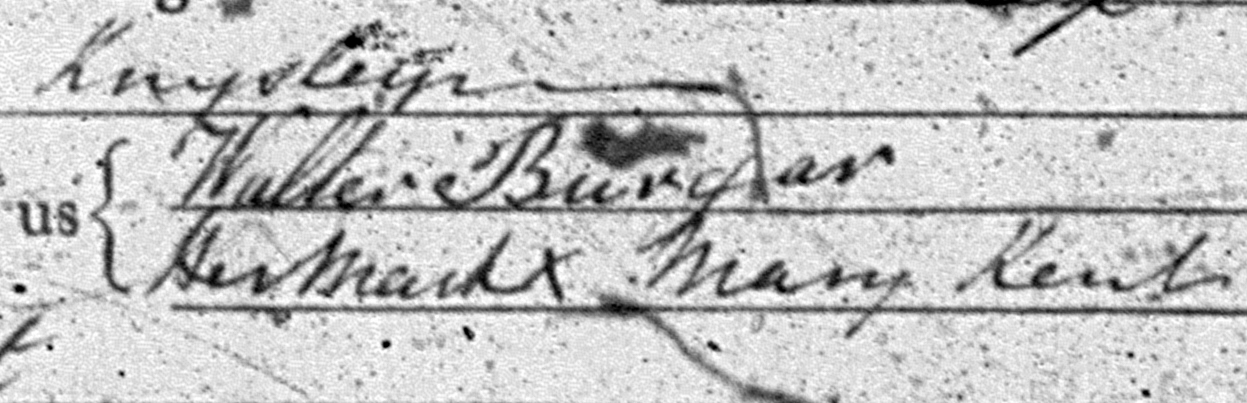 This is the signature of Walter Burgar (1) in the marriage register of St George Hanover Square, London, when he married Christian Jones in 1827.