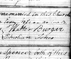 This is the signature of Walter Burgar (2) in the marriage register of St George in the East, Stepney, London, when he married Elizabeth Sanderson in 1795. Elizabeth signed 'El'