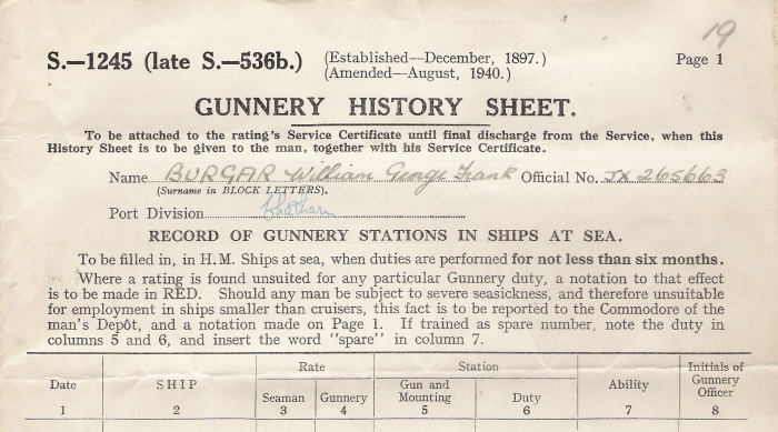 William George Francis Burgar (1911-1988) - Gunnery Record