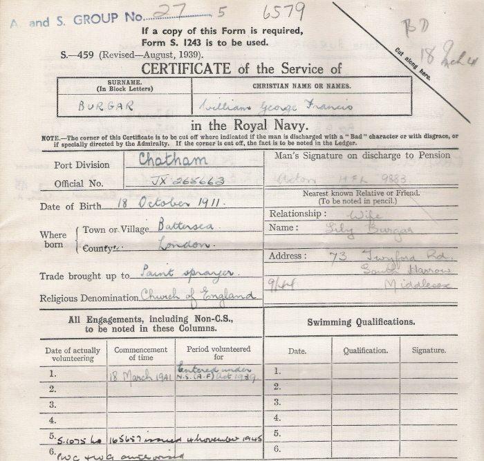 William George Francis Burgar (1911-1988) - Royal Navy Service