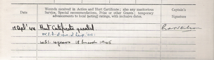 The details are shown in the attached Royal Navy forms. Only the parts of the forms with information on are shown.