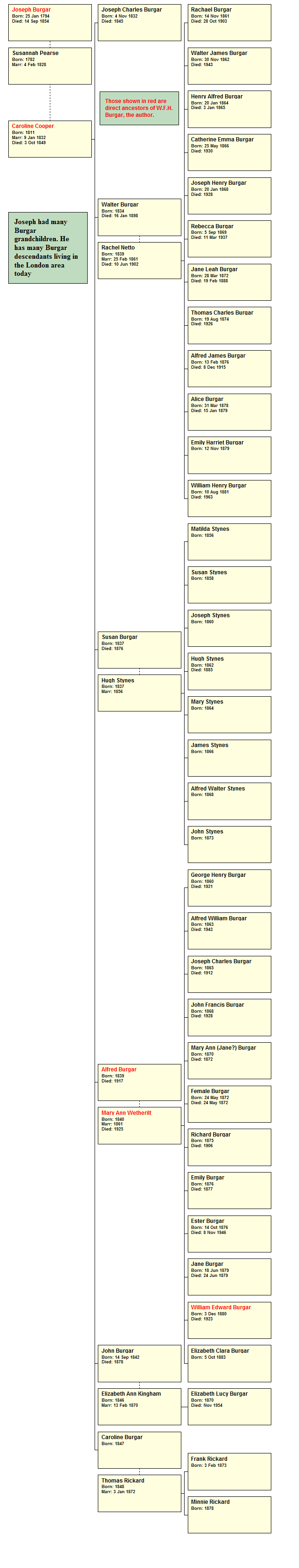 Tree for the descendants of Joseph Burgar & Caroline Cooper