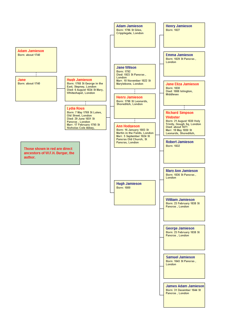 Family Tree showing descendants of Adam Jameison (about 1740 - ?)