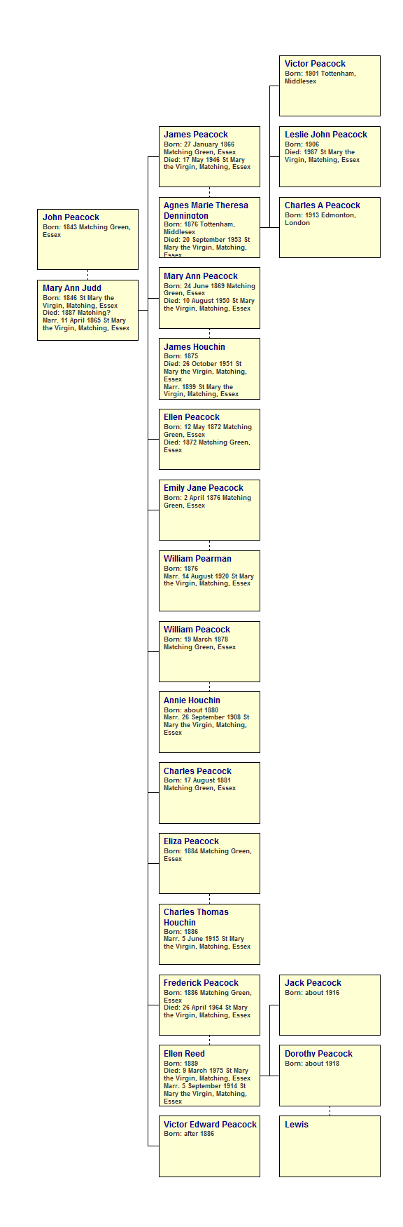 Family Tree showing descendants of John Peacock (1843 - ?)