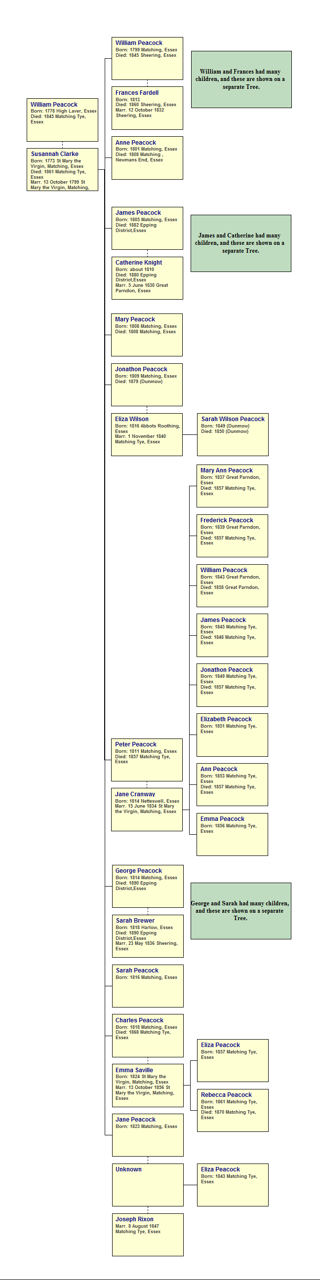 Tree showing the descendants of William Peacock (1778 - 1845)