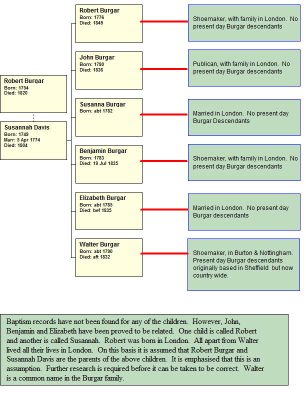 Tree showing the descendants of Robert Burgar and Susannah Davis