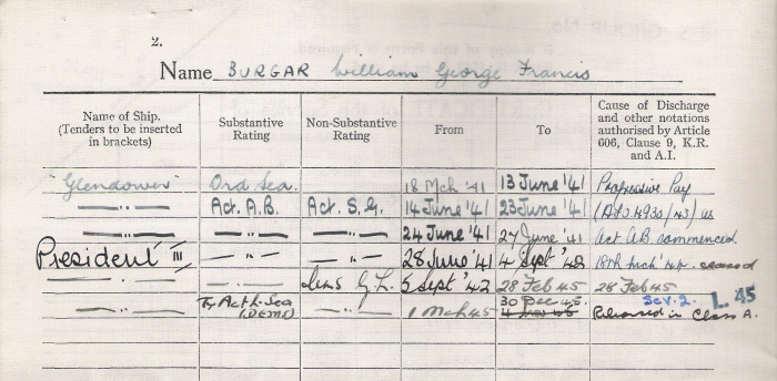 The details are shown in the attached Royal Navy forms. Only the parts of the forms with information on are shown.