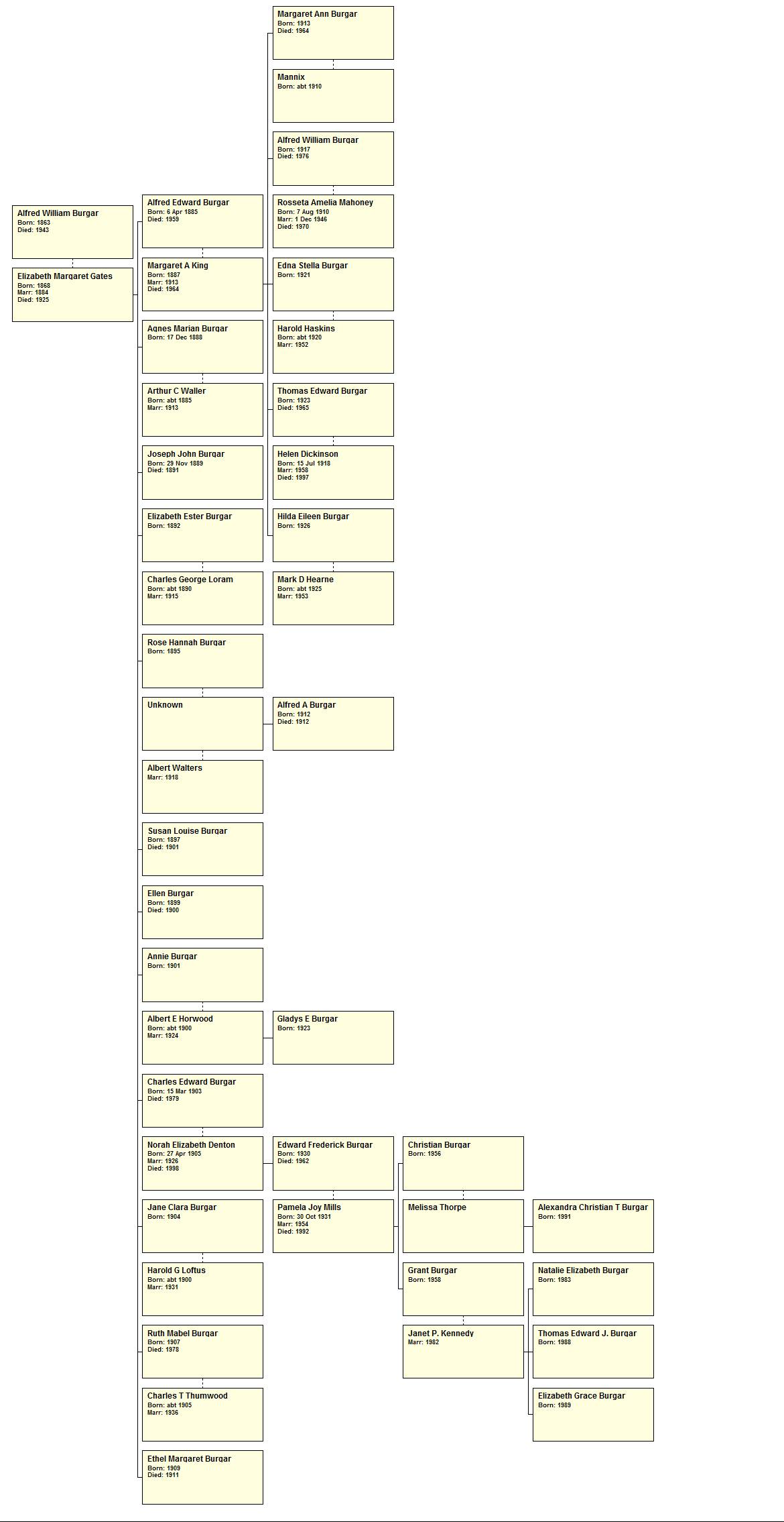 Tree for the descendants of Alfred William Burgar & Elizabeth Margaret Gates
