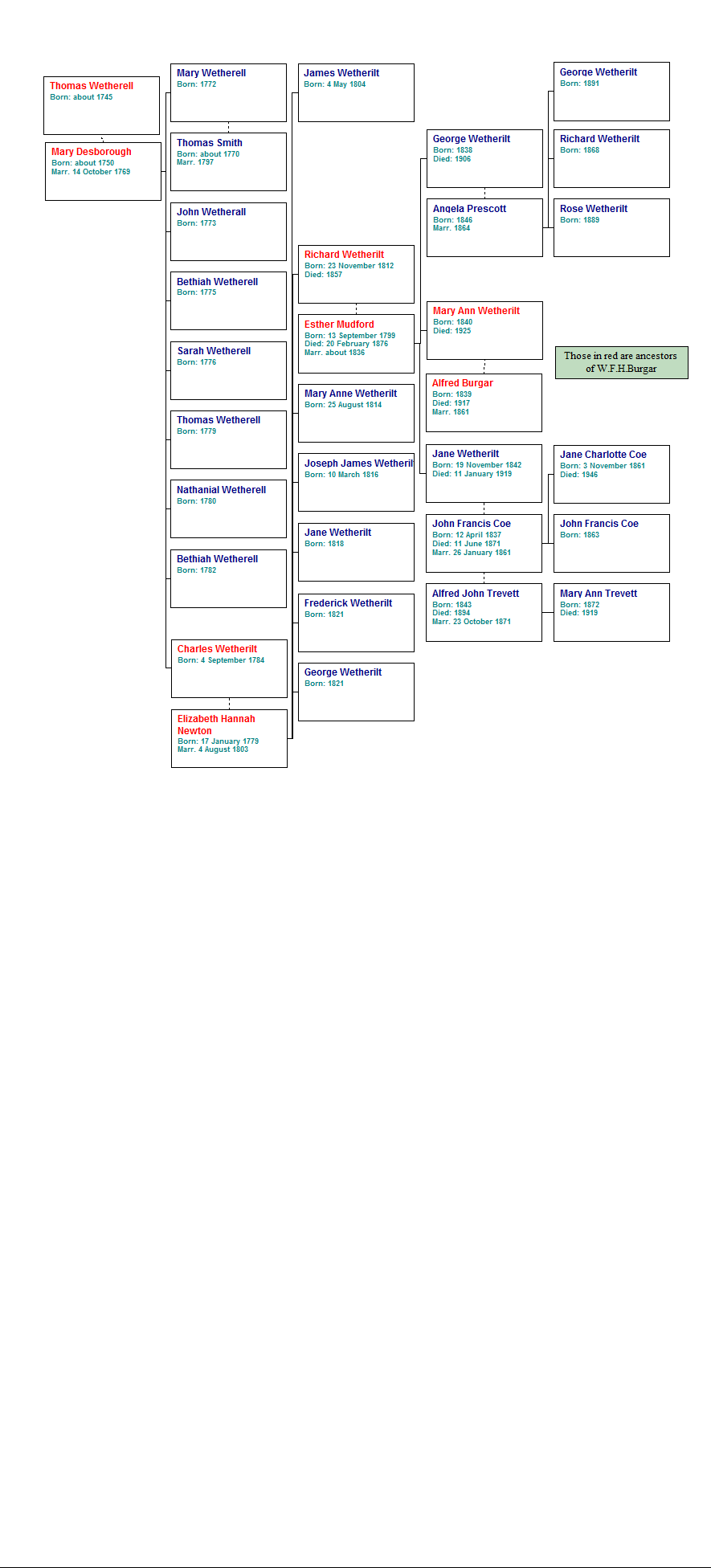 Tree showing the descendants of Thomas Wetherell (1745- ?)
